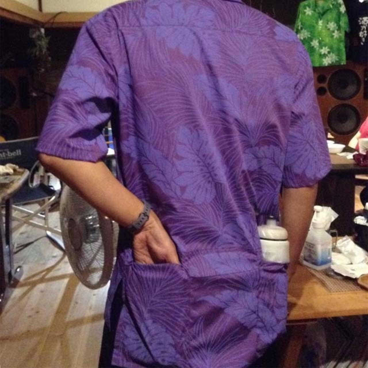 ・アロハシャツにサイクルジャージに付いているバックポケットを付けました。